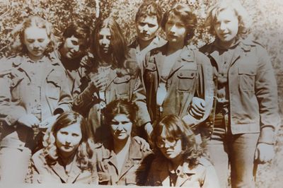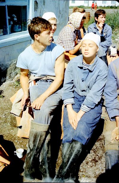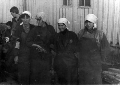 После ночной смены слева направо : Макушкина Наташа, Качаева Таня, Сидоренко Оля, ?, Лапшина Ира