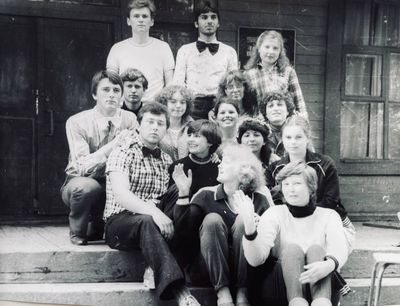 Стоит слева Беляев Юра Сидит Сакович Степа 1 ряд: Вдовина Татьяна Ермошина Ольга Сидоренко Ольга Любимова Лена Сафьянова Юля Хабидулина Марина 2 ряд: Лукиных Олег