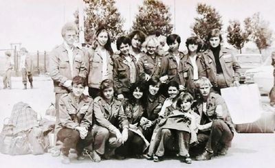 Аванте 81 Отлет в Омск Снизу слева направо Глуздак Сергей Ващенко Вася Дмитрюк Антонина Головастиков Андрей -> Бузин Игорь ? Косьяненко Юра Завязочникова Света Дмитриенко Игорь Сакович Степа Валов Александр -> ? Кузлякин Сергей ->Юр Маенкова Оля Азова Эля Грачева Лена Маценко Наташа Азанова Галя Фаттахова Клара Минюк Ольга -> Труфанова Наташа Сторожева Ирина Сильванкова Лена ? Бодраченко Таня Грабельникова Люба ? Малахова Ира? Мозжегорова Наташа Арумс Станислав