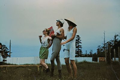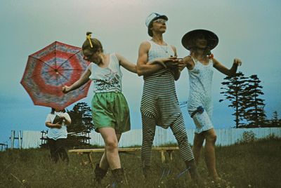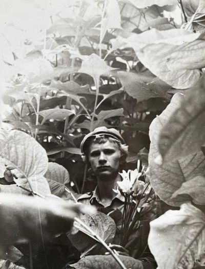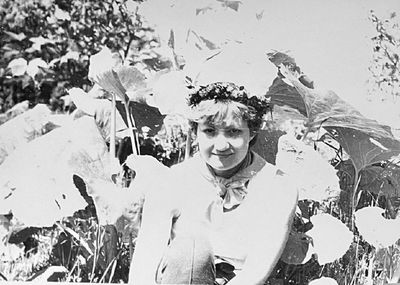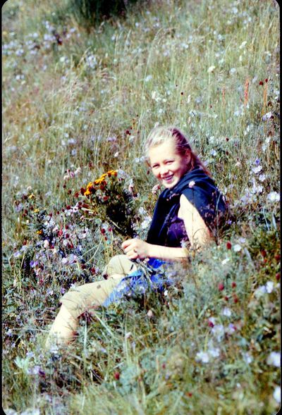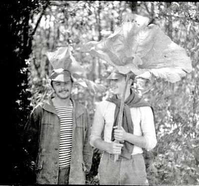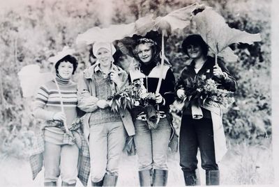 Зонтик из лопуха слева направо : Сургутскова Галя, Больных Оля, Лапшина Ира, Макушкина Наташа