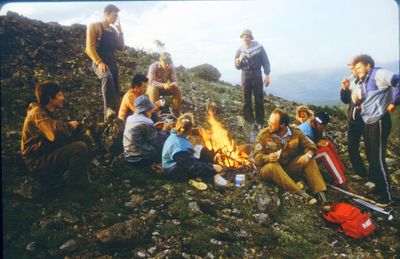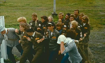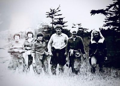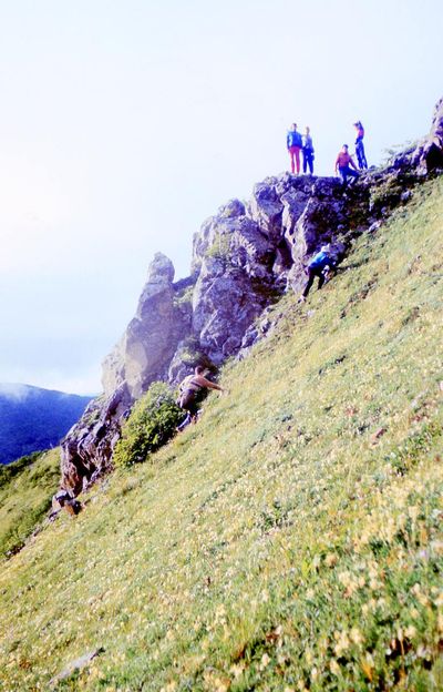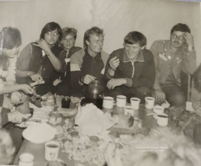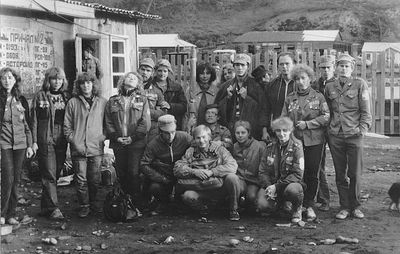 Где-то на сопках Снизу -> Дмитриюк Тоня Сывч Толя Лаптев Сергей -> Андреева Лена Жилякова Ольга Калевинский Владимир -> Хабидулина Марина Шафеева Ольга Косьяненко Юра Еремина Ира