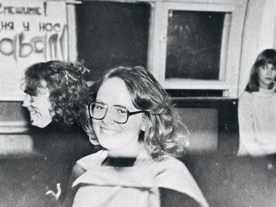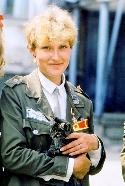 Лена Ганц с годовым запасом бескозырок.