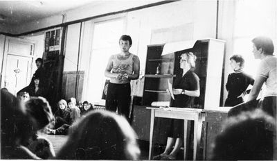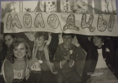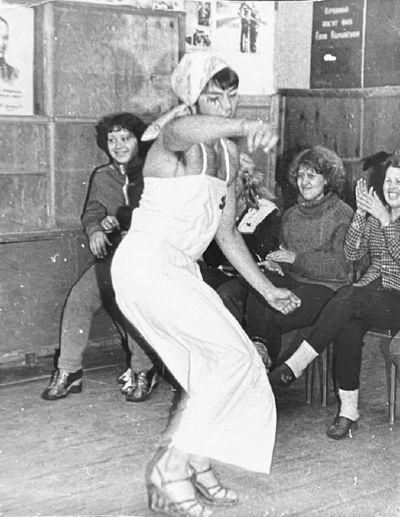 Аванте 81 А ну-ка, парни Бузин Игорь Слева сзади Сургутакова Галя Лапшина Ира видны волосы ее Трущелева Марина Осинцева Лена