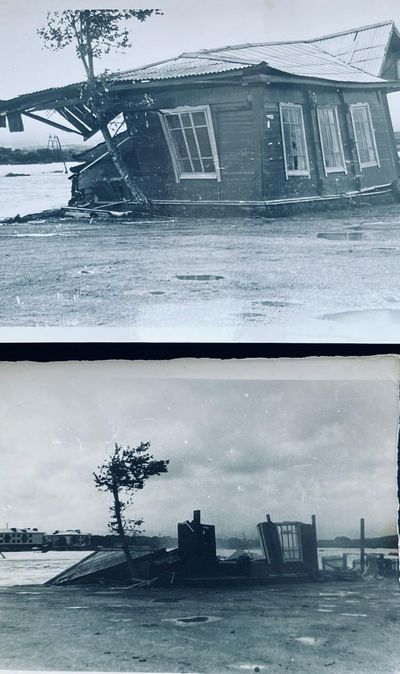 Аванте 81 Тайфун Оджен и Филлис Последствия Разрушенный мост по пути в Аниву