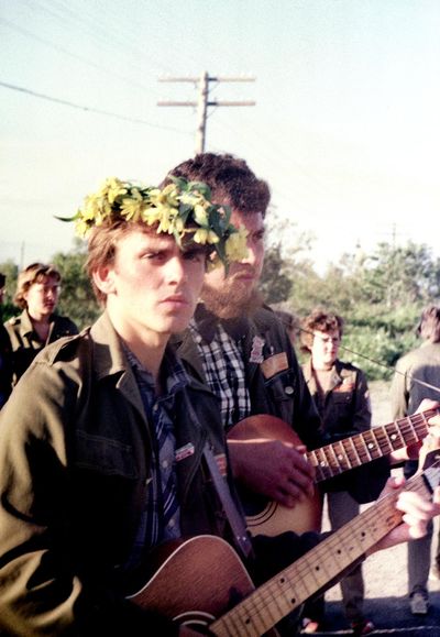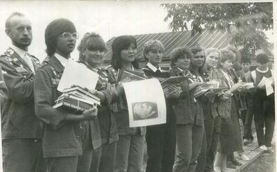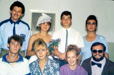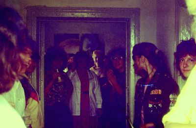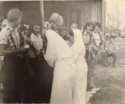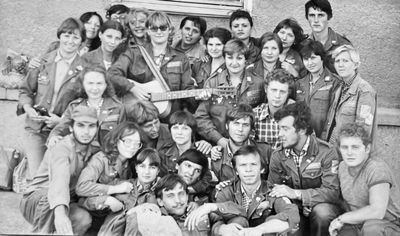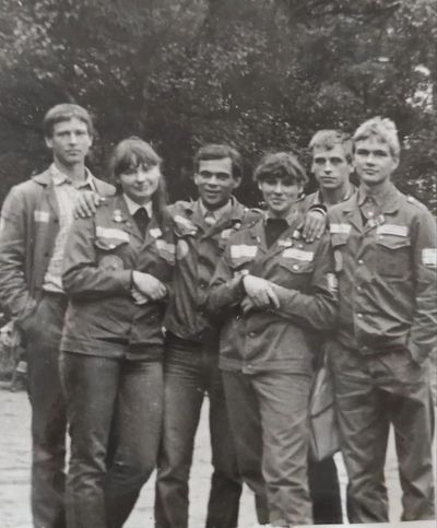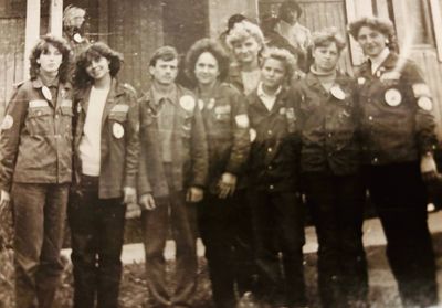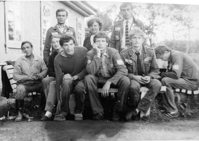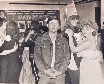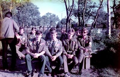 Аванте 81 Посвящение Слева направо -> Ягодин Олег Зятьков Саша Горчакова ? Освинцевав Лена Дмитриенко Игорь Маценко Наташа Доценко Люба Щеткина Галя ? -> Павликов Боря Гутова Марина Козлова Наташа Больных Ольга Дальше размыто ?
