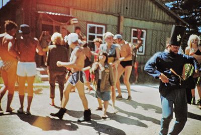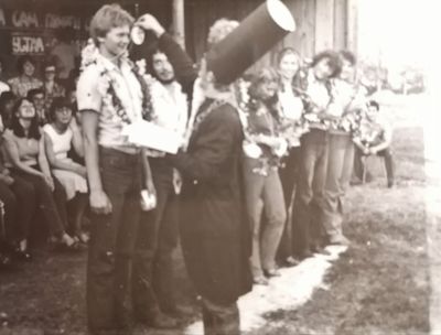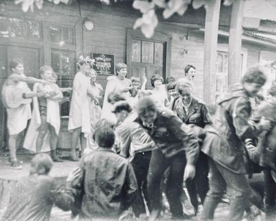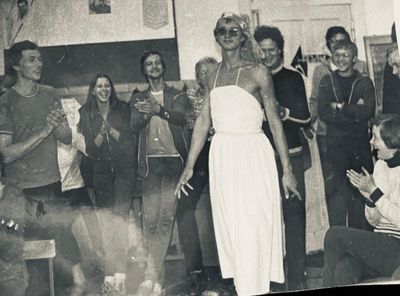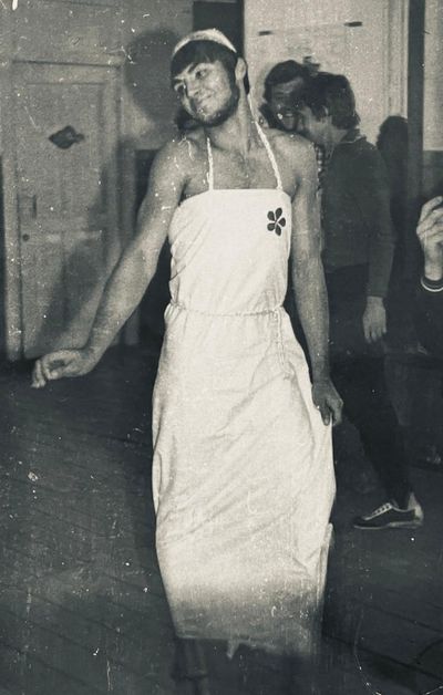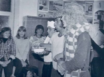 Аванте 81 Посвящение Слева направо боги и богини Олимпа Бузин Игорь Валов Саша Сзади Валова - Хирьянова Наташа Сакович Степа За ним -Пелах Лена Косьяненко Юра Грачева Лена Фаттахова Клара Арумс Слава И убегающий от окропление отряд
