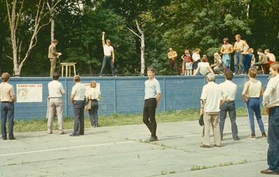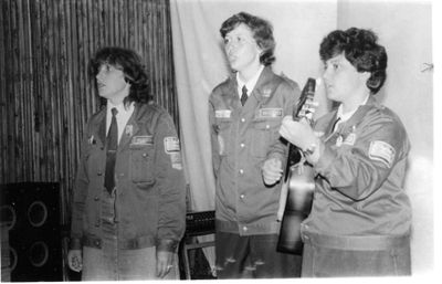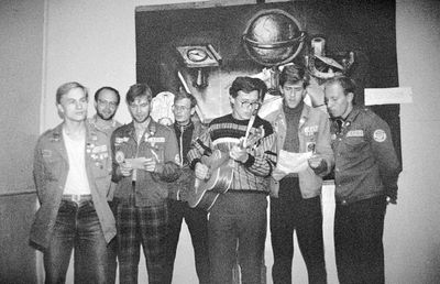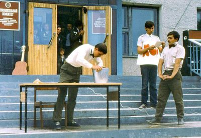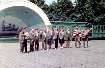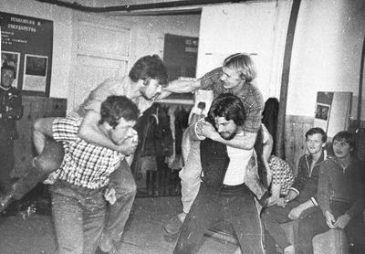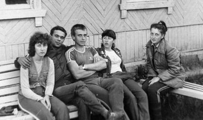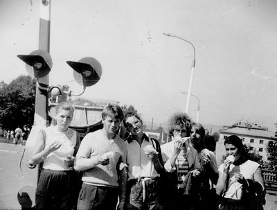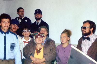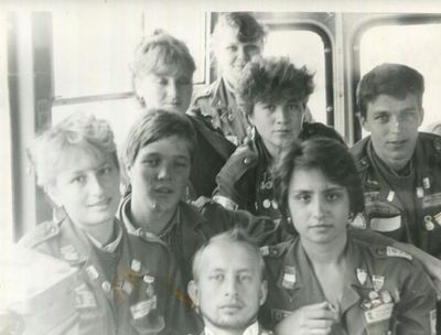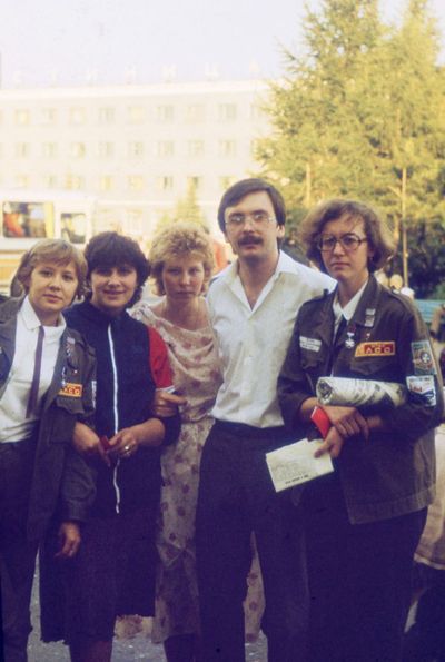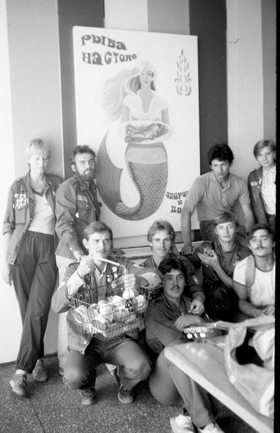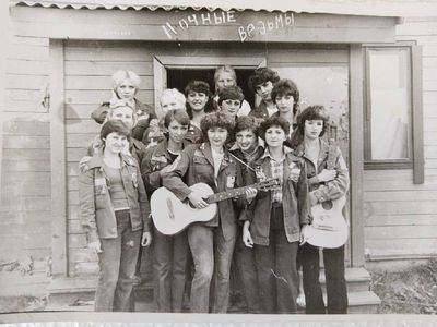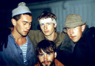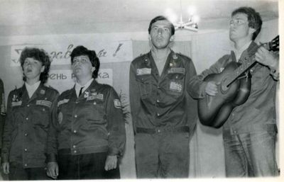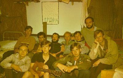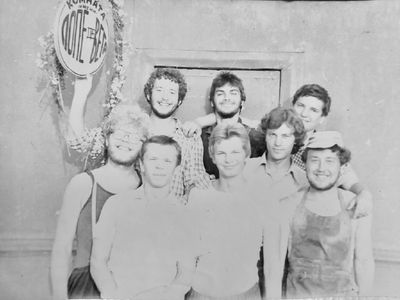 Снизу, слева направо, Павел Кветков, Олег Алимпиев, Штабнов Владимир; Вверху видны: ?, ?, Пляскин Юрий. Васючкина Галина, Беляева Инна, ?, ?