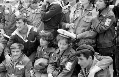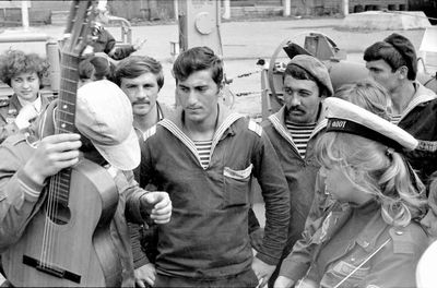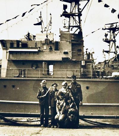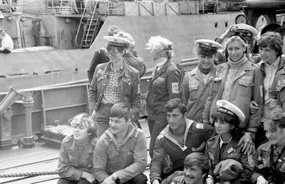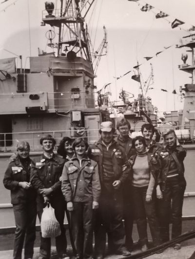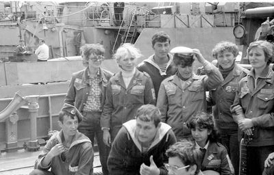 Снизу лежа - Дракунов Коля Слева направо 1 ряд : Ганц Лена 2 моряка Сидоренко Оля Туркина Наташа 2 ряд: Стоят ? Аксенова Лариса Ермошина Ольга Хабидулина Марина Беляева Лена