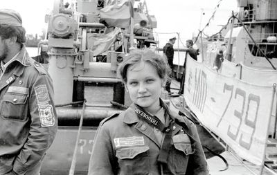 Лена Ганц командует военно-морским парадом.