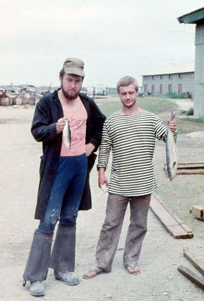 Просто местные культурные парни. С ручным дрессированным моржом. (обратите внимание на галстук)