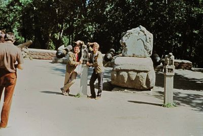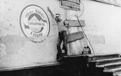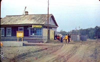 Уже 1990 году некоторые здания Атаргана выглядели не очень. Таня Тригубова в красном.