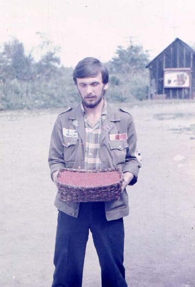 На болоте за ягодами (слева направо) : Сургутскова Галя, Макушкина Наташа Сидоренко Оля, Дубинин Слава, Больных Оля, Лапшина Ира