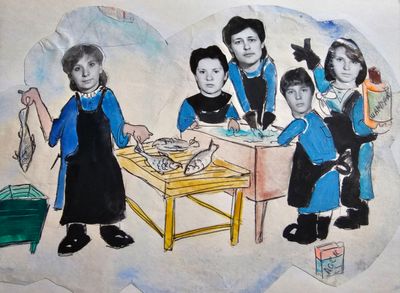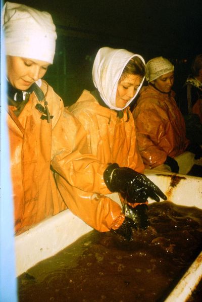 Рыбзавод. Икорный цех. Данильцева Катя Винник Александр Милютина (Каштанова) Инна