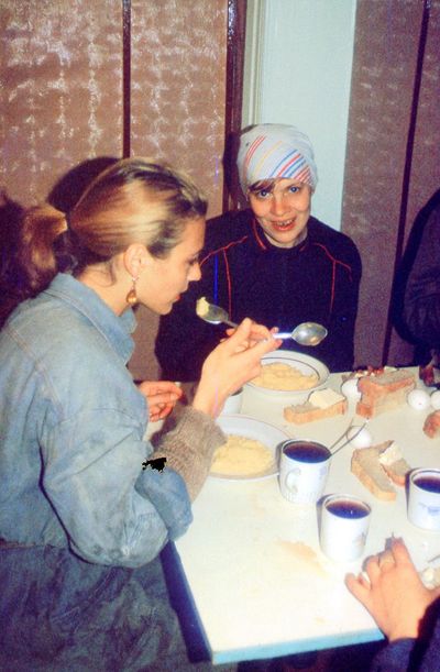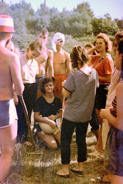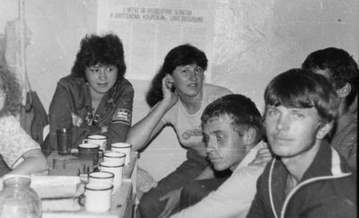 Минуты отдыха. Асауленко Паша за Аликом Побоковым, Лена Бакалина, Оксана Тригубова, Лариса Ганиева. За Пашей Асауленко - Калужина Оля. В верхнем ряду: Рущенко Юля, Мишин Лёша, Васюкова Нина, Власенкова Света, Елизарова Лена (спасибо Вове Соколову, он помнит всех!)