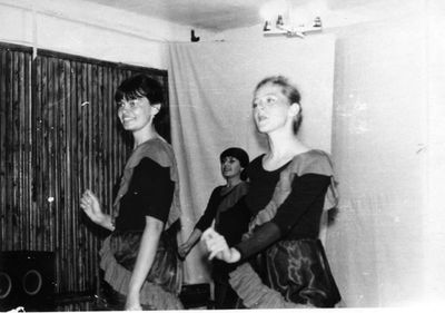 Аванте 81 подготовка к конкурсу Я на солнышке лежу слева направо Головастиков Андрей Кичина Ирина Завязочникова Света Макнкова Ольга Фаттахова Клара Труфанова Наташа На стуле - Янтылева Галя Слева на подиуме-Самуйлов Саша?