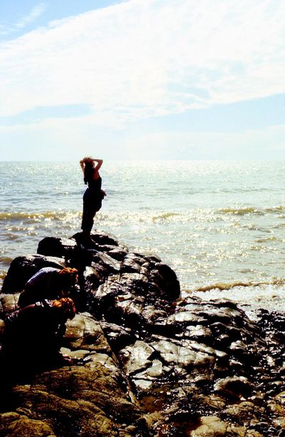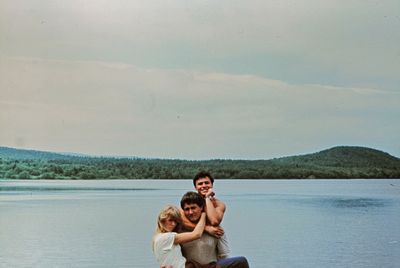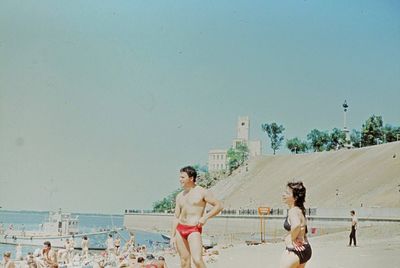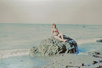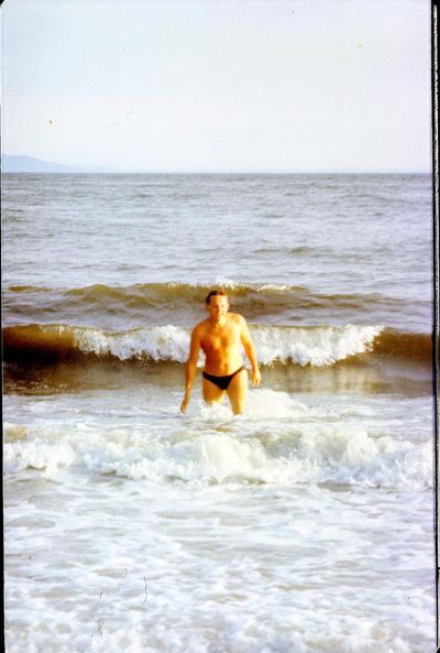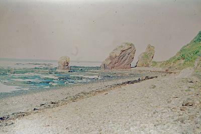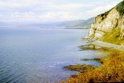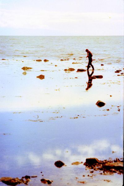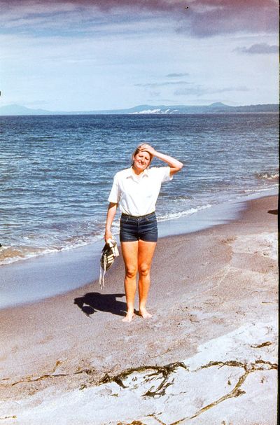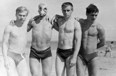 На берегу Анивского залива слева направо на переднем плане ? 2-ой ряд: Азанова Галя, Бодраченко Таня, ?, Малахова Ира, Азова Эля на заднем плане: Павликов Боря, Ягодин Олег