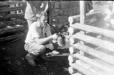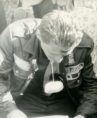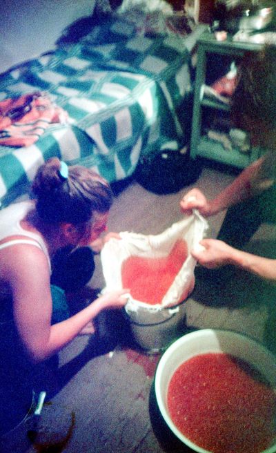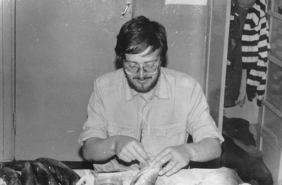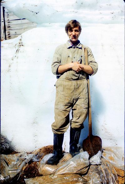 Ковыряние кульков с солью. Юра Пляскин в момент трудового подвига.