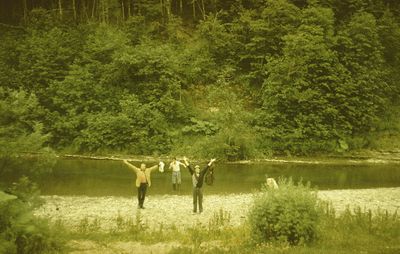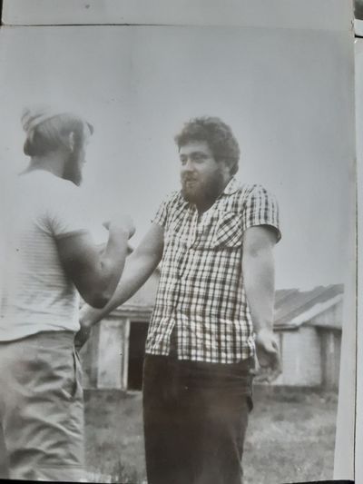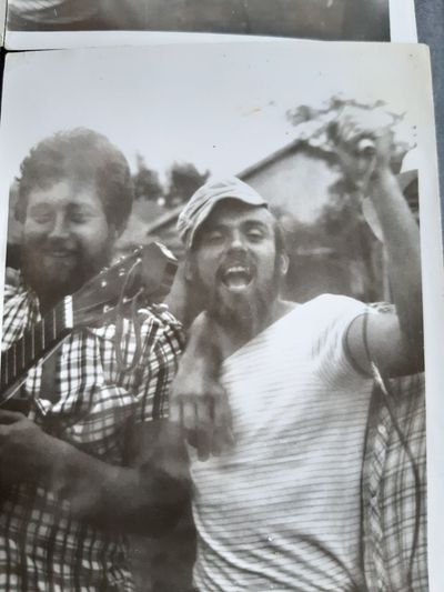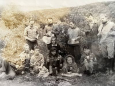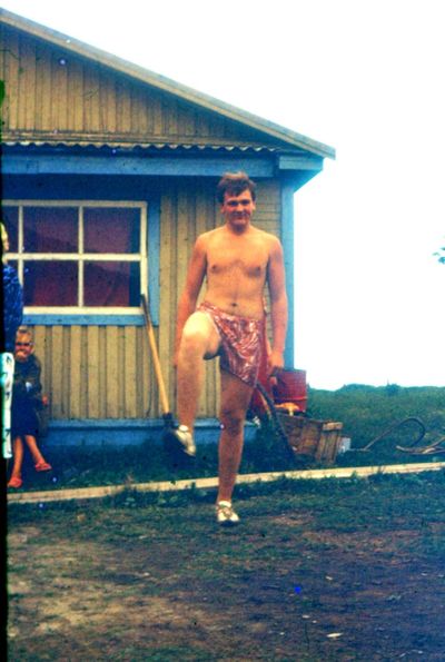 На этой фотографии к нам в гости приходил егерь со своей подругой. Помню что он помог нам поймать две рыбины из реки для ухи.