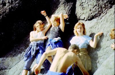 Поход номер 2 на озеро Красивые глазки. Аванте-Т 1992. За четыре года скалы несколько видоизменились и погода сухая. И уже два каната.