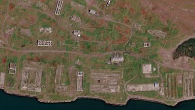 То, что осталось от посёлка Атарган. Спутниковый снимок. Видны чаны на месте рыбцеха.