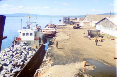 Вечерний вид на посёлок Атарган. (К сожалению, посёлок Аторган вместе с рыбзаводом не пережил перестройку и прекратил своё существование. Сейчас там только остатки фундаментов.)