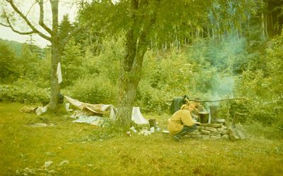 Спали под навесом из одеял. Саша Пелах научил как прогреть землю перед ночлегом. Использовали угли от прогорающего бревна. Ну и вместе не только веселее, но и теплее.