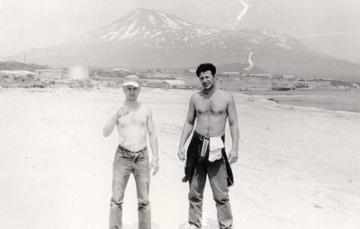 Вид на вулкан Богдан Хмельницкий. Бойцы отряда Аванте-Т : Хоменко Игорь, Топоровский Виталий (он же Рома).